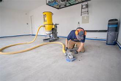 Uses a grinder with a dust collection system to smooth the concrete and create a textured surface for better adhesion.