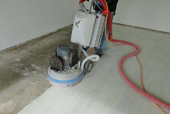 Uses a grinder with a dust collection system to smooth the concrete and create a textured surface for better adhesion.